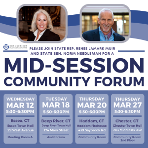 Starting March 12 & running through the end of the month, Senator Norm Needleman & I will travel around the district for mid-session community forums. We’ll discuss important issues impacting our state & bills under consideration this year.