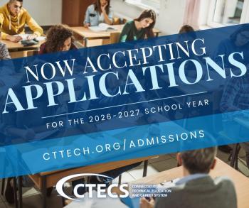 December 4, 2025The Connecticut Technical Education and Career System (CTECS) is accepting applications for students entering grades 9 and 10 in the 2026-2027 school year.