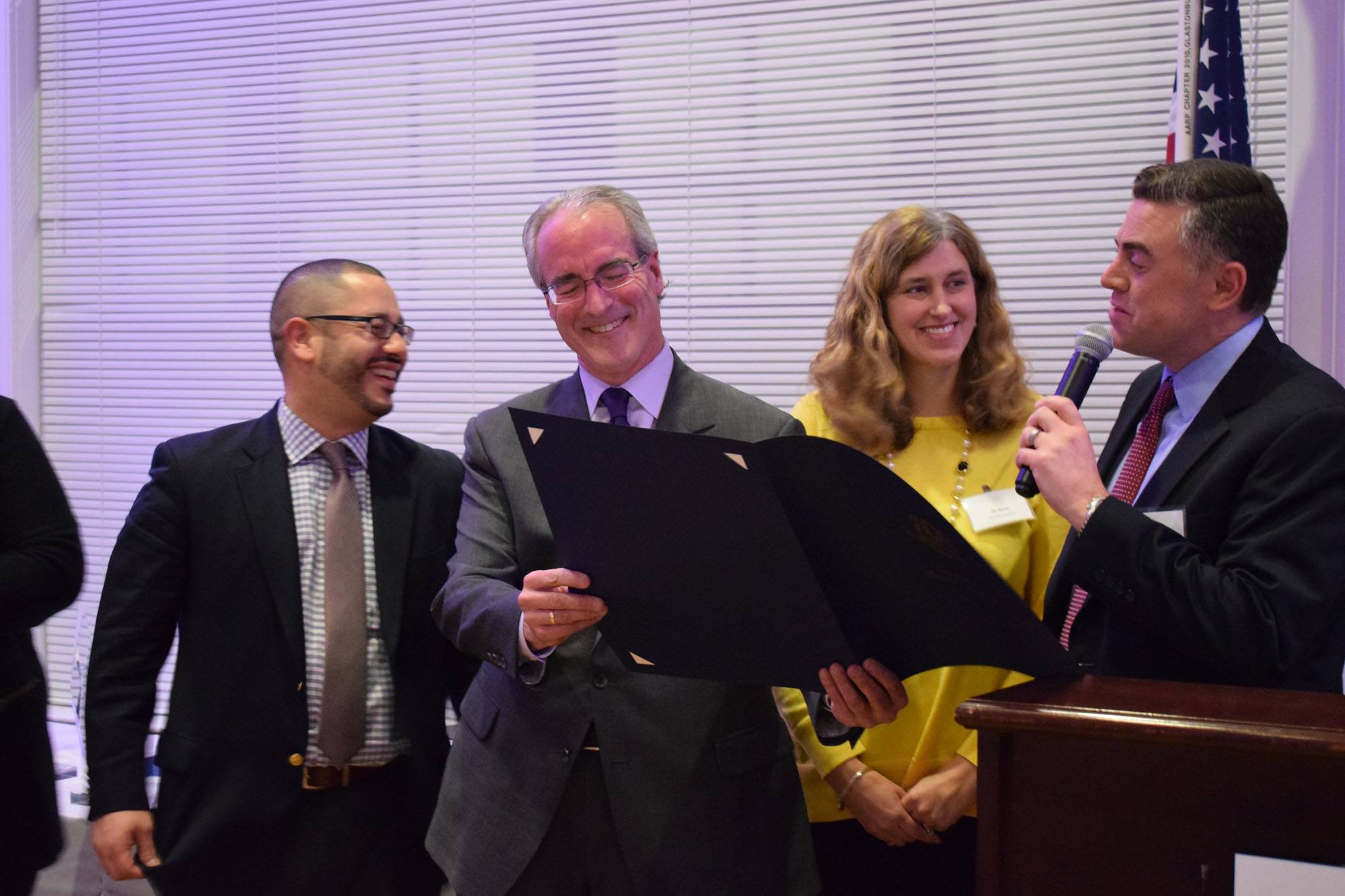 Photo: At the CT River Valley Chamber Annual Meeting where I helped present the award for Businessperson of the Year to Dean Marchessault, President of American Eagle Financial Credit Union.