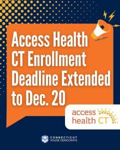 December 16, 2025Due to a system outage on Monday, Access Health CT is extending the enrollment deadline. Customers now have until Saturday, December 20, 2025, at 3 p.m. to enroll in coverage beginning January 1, 2026.