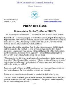 February 24, 2026Today, I spoke in favor of House Bill 5273, "An Act Requiring Children Under the Age of 12 to Wear Personal Floatation Devices (PFDs) on Docks, Wharfs, and Piers," during the Committee on Children's public hearing.