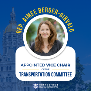 December 30, 2022State Representative Aimee Berger-Girvalo(D-Ridgefield) has been appointed Vice Chair of the Transportation Committee for the upcoming 2023 legislative session.