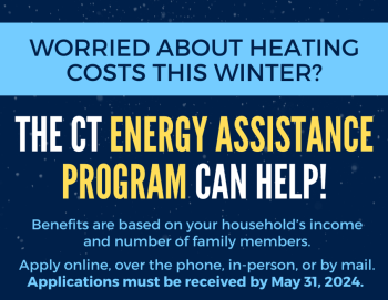 December 22, 2023As we are now right at the Holidays, the winter season will be getting colder and colder. Many of us will struggle to keep our homes warm, so don't forget the great resource provided by the state of CT with its energy assistance program.
