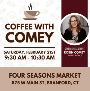February 19, 2026Please join me for Coffee with Comey on Saturday, February 21, at 9:30 a.m. at Four Seasons Market.