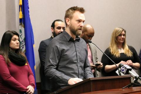 March 7, 2019Sen. Gary Winfield (D-New Haven) and State Representative Josh Elliott (D-Hamden) hosted a press conference on legislation to restore the electoral privileges of incarcerated individuals.