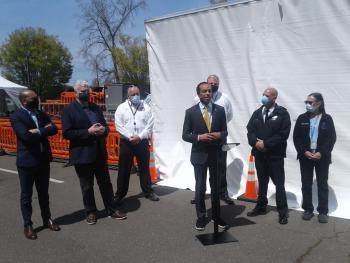 and Danbury's mayor to welcome Connecticut Treasurer Sean Wooden and visit the FEMA vaccination site at the train station.