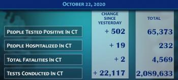 October 22, 2020Here is the October 22, 2020 update from Governor Ned Lamont regarding the state's coronavirus response efforts.