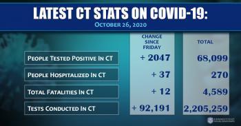 October 26, 2020Here is the October 26, 2020 update from Governor Ned Lamont regarding the state's coronavirus response efforts.
