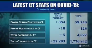 October 8, 2020Here is the October 8, 2020 update from Governor Ned Lamont regarding the state's coronavirus response efforts.