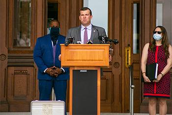 July 10, 2020Co-chairs and ranking members of the Committee on Judiciary stood outside the Capitol this morning to announce An Act Concerting Police Accountability (AACPA).