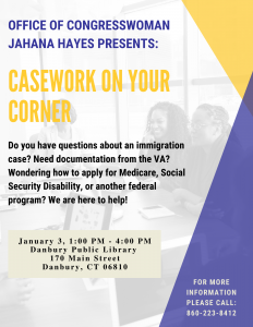 January 3, 2020Here's our chance to meet with congressional case workers, one-on-one, conveniently in Danbury.