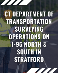 July 15, 2025The Connecticut Department of Transportation (CTDOT) has announced that Survey Operations will be performed on Interstate 95 north and southbound in Stratford. This project is scheduled to start on July 19 and be completed on July 26.