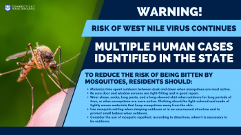 September 17, 2021I hope you are doing well and comfortably settling into the new school year or your new (almost) fall routines! As we continue to enjoy the beautiful New England late summer/early fall weather, I did want to remind the community that West Nile Virus remains a risk throughout Connecticut.