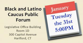 January 30, 2017Chairman Rep. Christopher Rosario (D-Bridgeport) and Vice Chairman Rep. Brandon McGee (D-Hartford) of the legislature’s Black and Latino Caucus announced a public forum will take place Tuesday, January 31 at the Legislative Office Building.