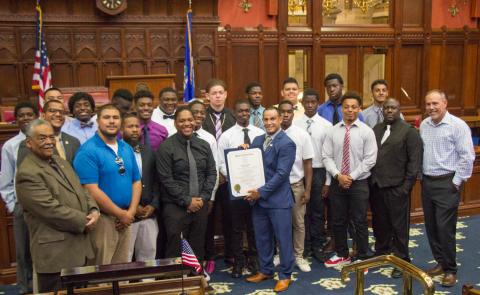 July 8, 2016I join with Majority Leader Joe Aresimowicz to congratulate the Harding Football Team and Coach Eddie Santiago on winning the City Championship and their division conference!