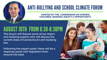 August 4, 2022I am hosting an Anti-Bullying and School Climate Forum on August 10th with the Commission on Women, Children, Seniors, Equity & Opportunity and some of our state’s anti-bullying experts.