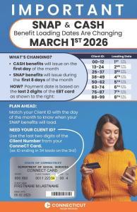 Connecticut passed new legislation requiring the Department of Social Services to spread out SNAP benefit issuance dates throughout the month rather than concentrating them in the first few days. This change will help reduce congestion at retailers and improve the overall client experience. SNAP users can expect this change to begin on March 1st, 2026.