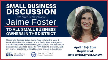 April 13, 2021This Thursday, April 15, I am co-hosting an event with the Small Business Association (SBA). I will be joined by two SBA officials, Catherine Marx and Frank Alvarado.