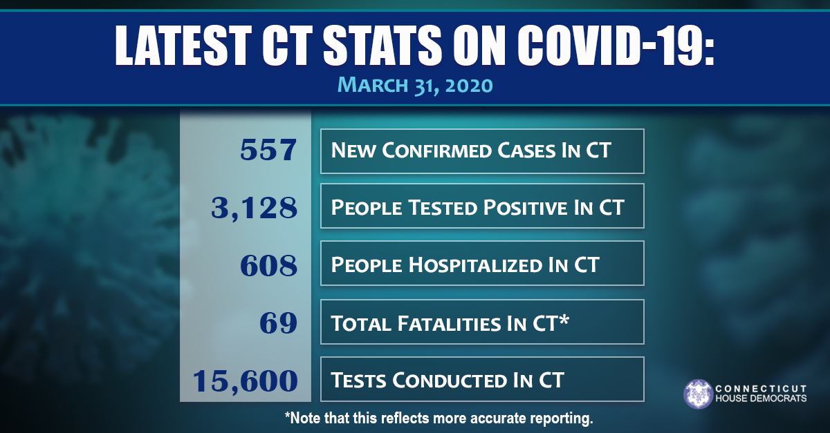 (HARTFORD, CT) – As the State of Connecticut continues taking actions in response to the global spread of coronavirus disease (COVID-19), Governor Ned Lamont provided the following updates as of 7:00 p.m. on Tuesday, March 31, 2020: