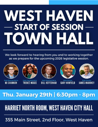 I invite you to join my colleagues and me for a Town Hall ahead of the 2026 legislative session, which begins February 4th. Your participation is important—please attend and share your thoughts, ideas, and concerns to help shape how we represent you in Hartford.