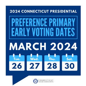 March 15, 2024Early voting options are now available thanks to the work of the Connecticut General Assembly last session, and later this month, voters in the state will take to the polls to vote in the 2024 presidential primary.