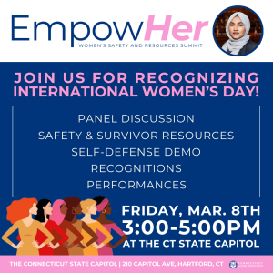 This event - celebrating International Women's Day - will feature a panel discussion, safety & survivor resources, a self-defense demo, recognitions, performances, and more.