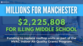 June 3, 2024The Department of Administrative Services (DAS) recently announced grant awards for public schools across Connecticut through the HVAC Indoor Air Quality Grants Program, including Illing Middle School in Manchester, to make upgrades to heating, ventilation, and air conditioning (HVAC) systems.