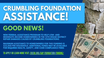 January 12, 2024As a member and founder of the bipartisan Crumbling Foundations Caucus, I want to let residents of the 12th House District know about an exciting new federal funding opportunity for low- and moderate-income families suffering from crumbling foundations.