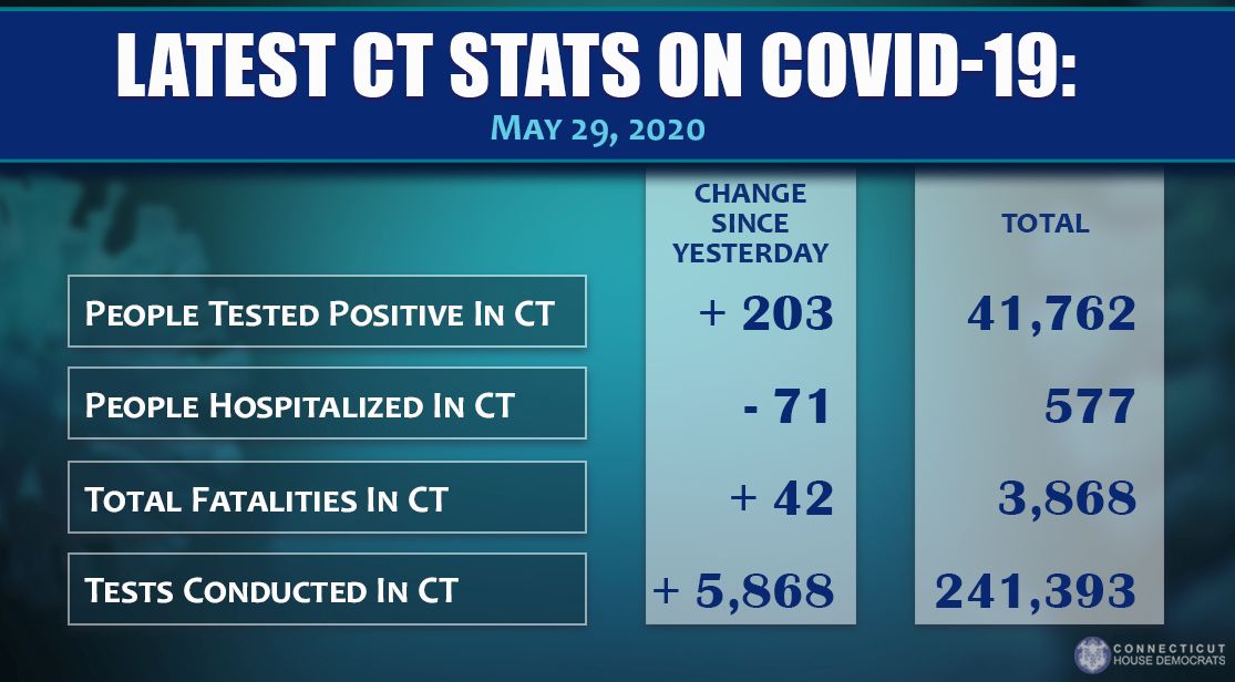 (HARTFORD, CT) – As the State of Connecticut continues taking actions in response to the global spread of coronavirus disease (COVID-19), Governor Ned Lamont provided the following updates as of 7:00 p.m. on Friday, May 29, 2020: