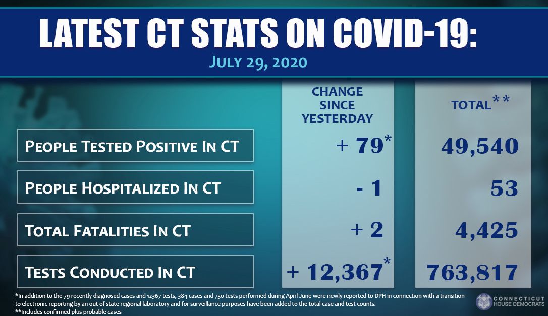 July 29, 2020Here is the July 29, 2020 update from Governor Ned Lamont regarding the state's coronavirus response efforts: