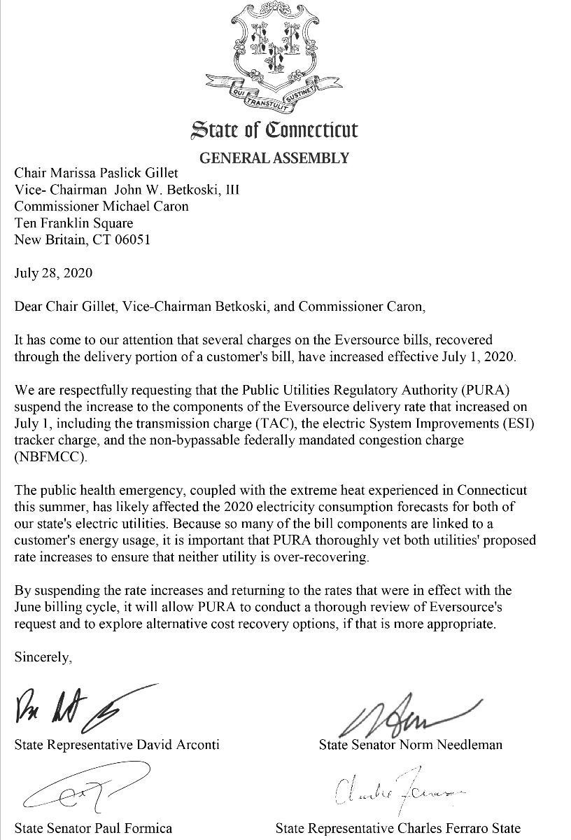 In the letter they asked PURA to conduct a thorough review of Eversource's request and to explore alternative cost recovery options.