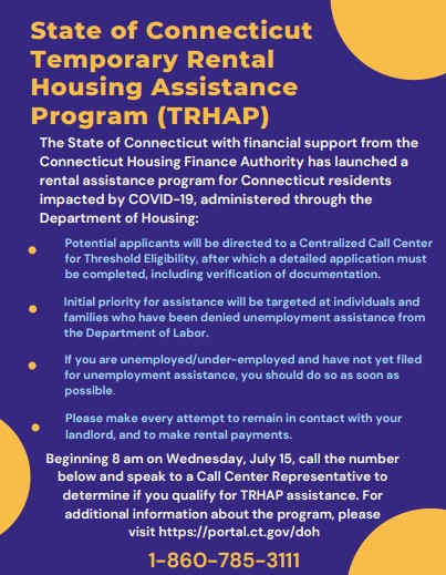 Individuals who would like to speak to a Call Center Representative to determine their eligibility for TRHAP assistance can call 1-860-785-3111, or they may click the button below: