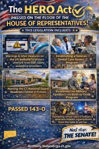 April 17, 2026I was glad to see the HERO Act has passed the Connecticut House of Representatives with strong bipartisan support, delivering meaningful protections and resources for our veterans and military families.