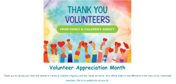 April 17, 2026The Family & Children's agency in Norwalk is thanking its volunteers this month for all the work they do on behalf of children and families.