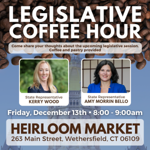 December 10, 2024Come join me for some coffee & conversation before the legislative session. All ideas are welcome to this fun and engaging event.
