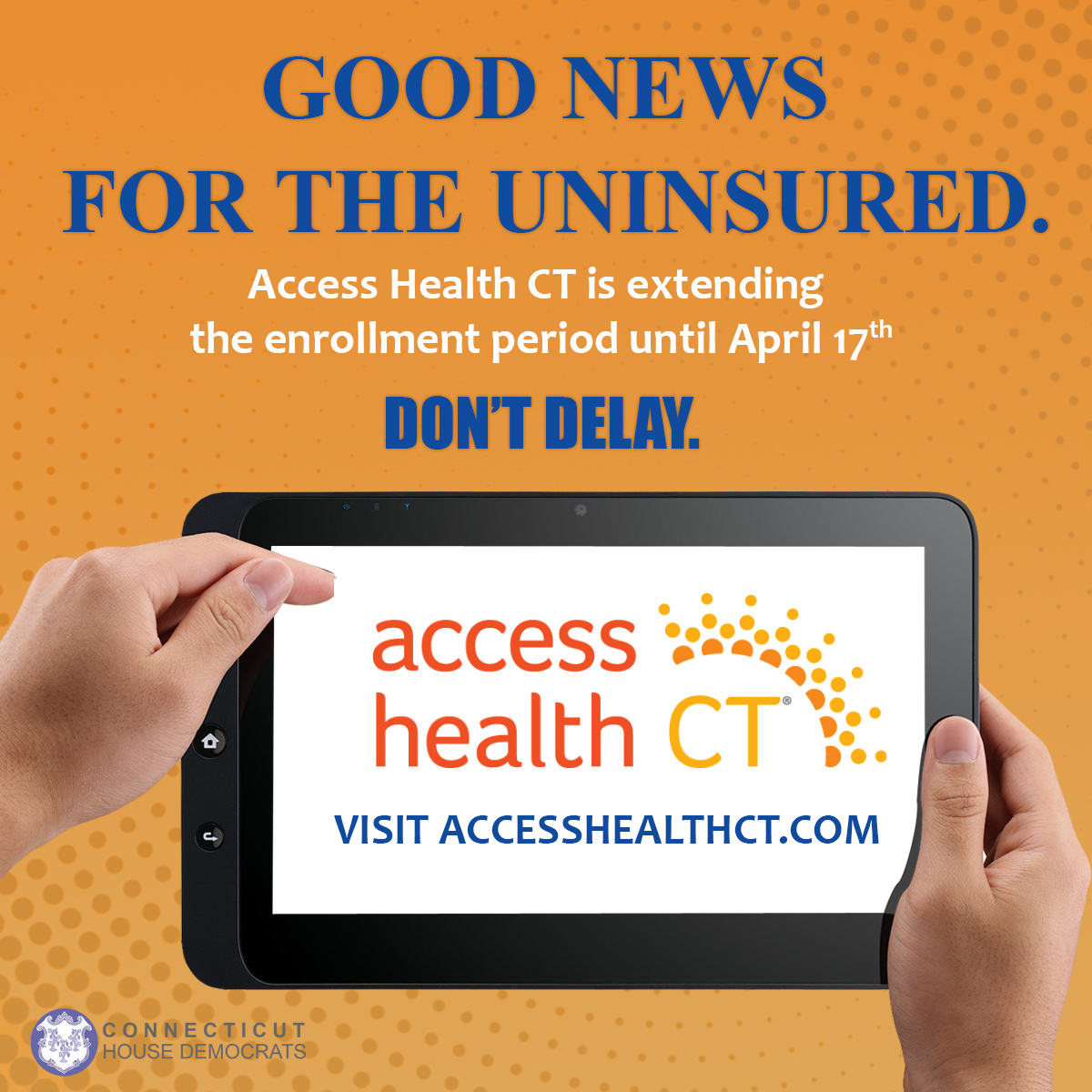 Uninsured individuals can sign up for health insurance through Access Health CT during this time. Coverage will begin May 1. The only way to sign up for the new special enrollment period is by calling 855-365-2428.
