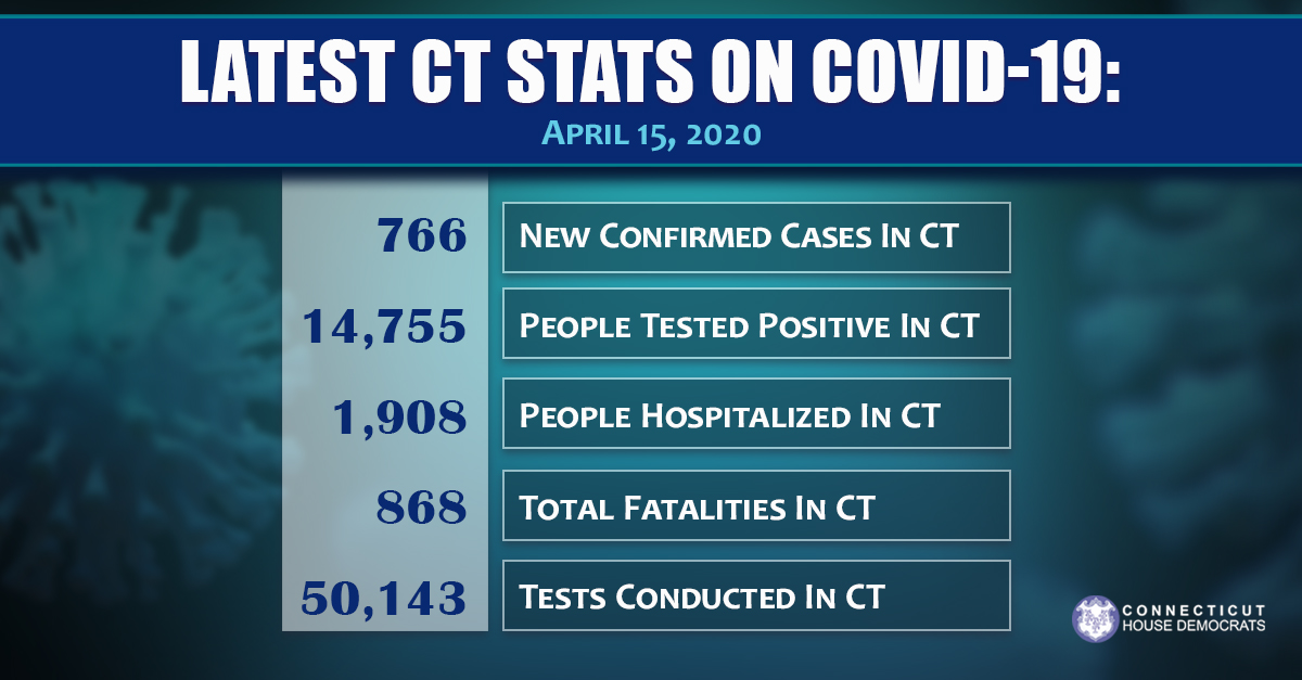 There have been an additional 766 confirmed COVID-19 cases in Connecticut since Tuesday, bringing the state's total to 14,755. There have been 1,908 hospitalizations and 868 fatalities related to COVID-19. Click the image above to view a county-by-county breakdown of cases or additional data by age group.
