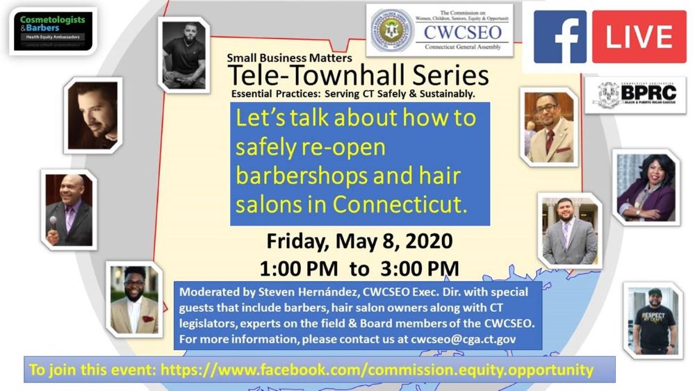 On Friday, May 8 from 1 p.m. to 3 p.m. there will be a Small Business Matters Tele-Townhall Series about how to safely re-open barbershops and hair salons in Connecticut. You can tune in at www.facebook.com/commission.equity.opportunity.