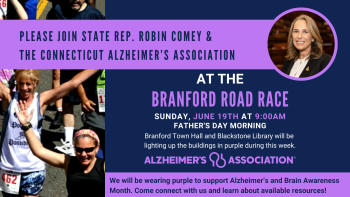 June 17, 2022I hope you can join me and the Alzheimer's Association Connecticut Chapter, at the Branford Road Race on Father's Day in support of Alzheimer's & Brain Awareness Month.