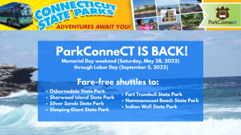 June 8, 2022It is now easier than ever to visit a Connecticut State Park. ParkConneCT, a transportation service that offers fare-free buses to Connecticut beaches and state parks, is now open for the summer season. This expanded service will run through Labor Day.