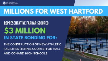 March 31, 2022Today, the Connecticut State Bond Commission voted to release $3 million in state funding to the Town of West Hartford to replace 24 tennis courts at Conard and Hall High School.