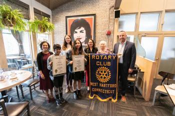 April 18, 2022Today, State Representatives Jillian Gilchrest, Tammy Exum, and Kate Farrar, members of West Hartford's first all women delegation to the state House of Representatives, recognized the winners of the delegation's Women's History Month Essay contest at the Pond House Café in Elizabeth Park in West Hartford. Annie Lopez-Lopez won from Conard High School and Amithi Nair won from Hall High School.