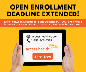 December 16, 2021Connecticut residents have more time to enroll in a health insurance plan through Access Health CT for coverage starting with the new year!