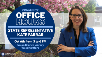 September 30, 2021On Wednesday, October 6, I hope you'll stop by for Community Office Hours from 5 p.m. to 6 p.m. at the Faxon Branch Library!