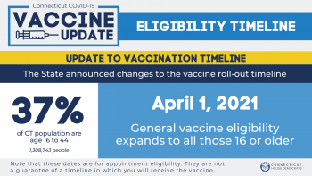March 26, 2021On April 1, every Connecticut resident over the age of 16 will be able to schedule their appointment for the COVID-19 vaccine, Governor Lamont announced Thursday.