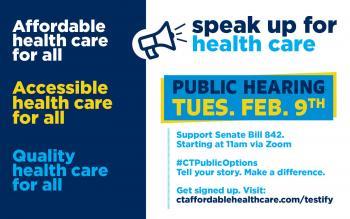 February 8, 2021I’ve heard from you and from many families and businesses throughout the 20th District about the difficulties to access affordable and dependable health care. As a member of the Insurance & Real Estate Committee, I wanted to alert you to an important hearing on Tuesday, February 9 on Senate Bill 842 – An Act Concerning Health Insurance and Health Care in Connecticut.