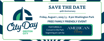 July 31, 2025Tomorrow, Aug. 1 from 5-8pm in Washington Park is Groton's 40th Anniversary City Day! City Day is a great celebration of what makes Groton so special, and it will be jam-packed with events, including a cornhole tournament, a concert in the park, and all kinds of entertainment for you and your family. Click here for more information. I hope you'll check out this wonderful event!