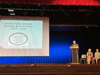 August 22, 2025This morning, I was happy to join Groton Public School teachers at their convocation before the school year begins. I want to wish the best of luck to all teachers and staff as they prepare to welcome back students next week - have an amazing year, and go Falcons!