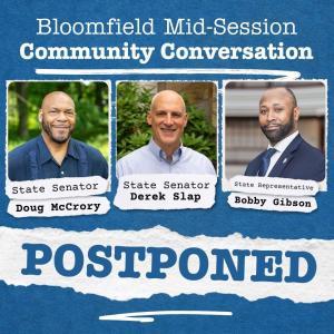 April 22, 2025Tonight's Bloomfield Community Conversation has been postponed due to legislative commitments concerning our state budget. I apologize for any inconvenience and will share the new date as soon as its available.