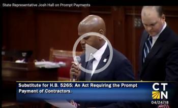 April 25, 2018State Representative Joshua Hall hailed passage of a measure he championed, House Bill 5265, that would require public and private contractors to get paid within 25 days instead of the 30 days under existing law.